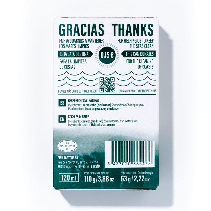 Ingredientes: Berberechos (molusco) , agua, sal.